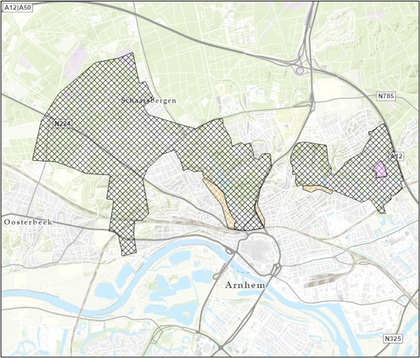 Indicatieve kaart met de locaties van leemlagen in Arnhem-Noord.